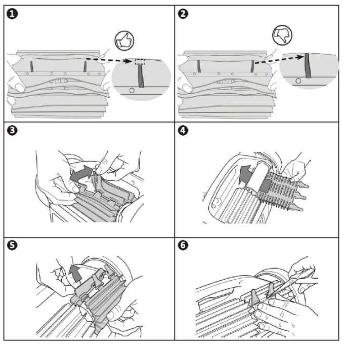 - Sortez les languettes des fentes de la première brosse (3).
