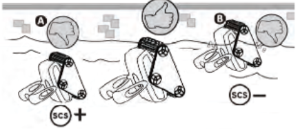 - Le robot monte rapidement en parois et dépasse la ligne d'eau en aspirant de l'air : appuyez sur "SCS" pour réduire le nombre de Leds.