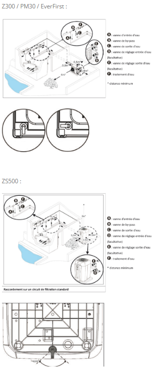 Connectez votre pompe après le filtre et avant le traitement d’eau en respectant le sens de raccordement hydraulique.