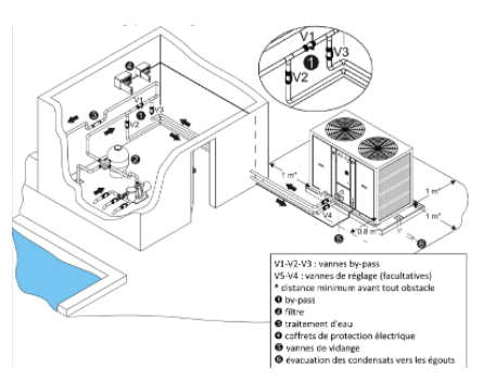 Installez si possible des vannes de vidange en entrée et sortie d’eau de piscine de l’appareil, afin de faciliter la vidange pour l’hivernage ou la maintenance.