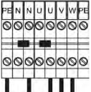 3 phases (U+V+W) + 1 neutre (N) + 1 terre (PE)